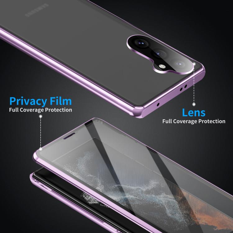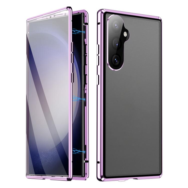 For Samsung Galaxy S25 5G HD Full Cover Magnetic Metal Tempered Glass Phone Case(Purple)