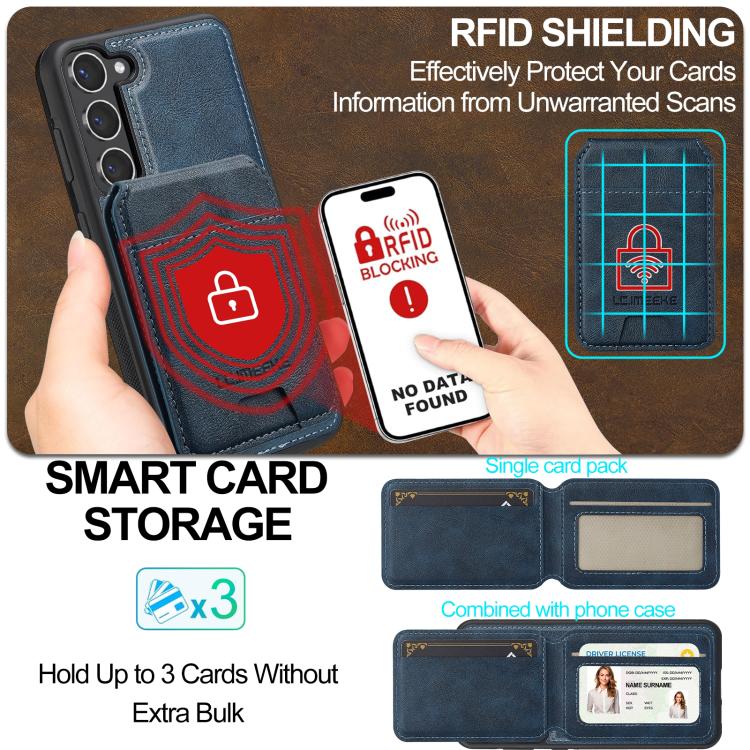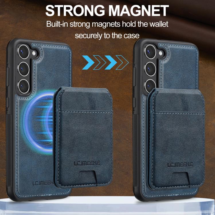 For Samsung Galaxy S25 5G LC.IMEEKE L3 Series Detachable RFID Card Bag Magsafe Phone Case(Blue)