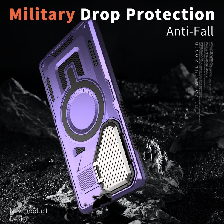 For Samsung Galaxy S25 5G Shield Frame Holder MagSafe Phone Case(Purple)