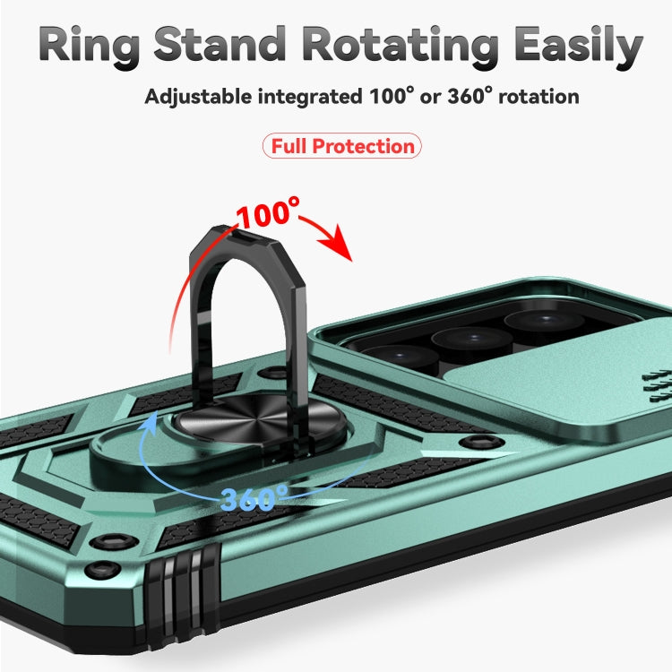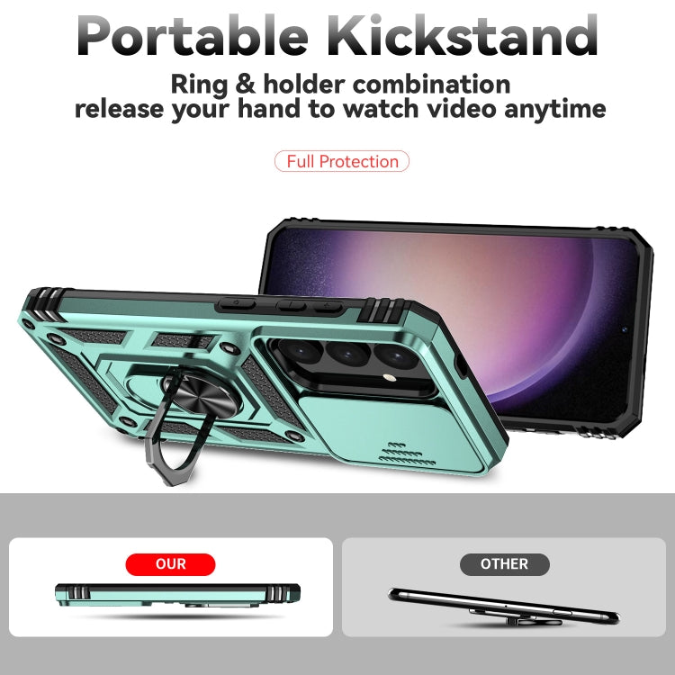 For Samsung Galaxy S25+ 5G Sliding Camshield Holder Phone Case(Green)