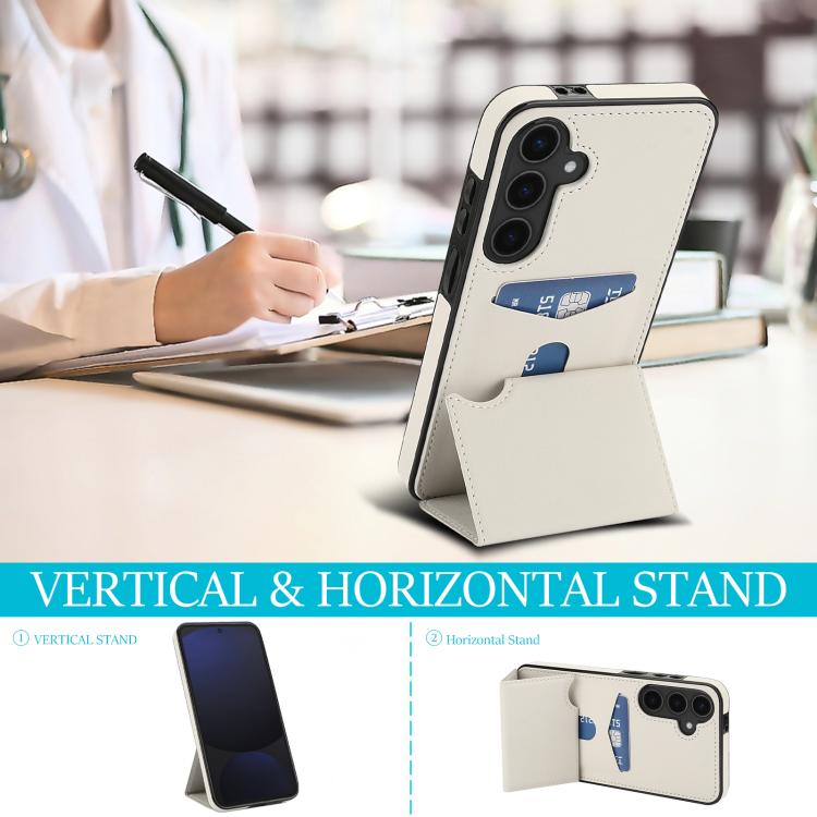 For Samsung Galaxy S25 5G Tri-fold Holder Leather Phone Case with Card Slot(White)