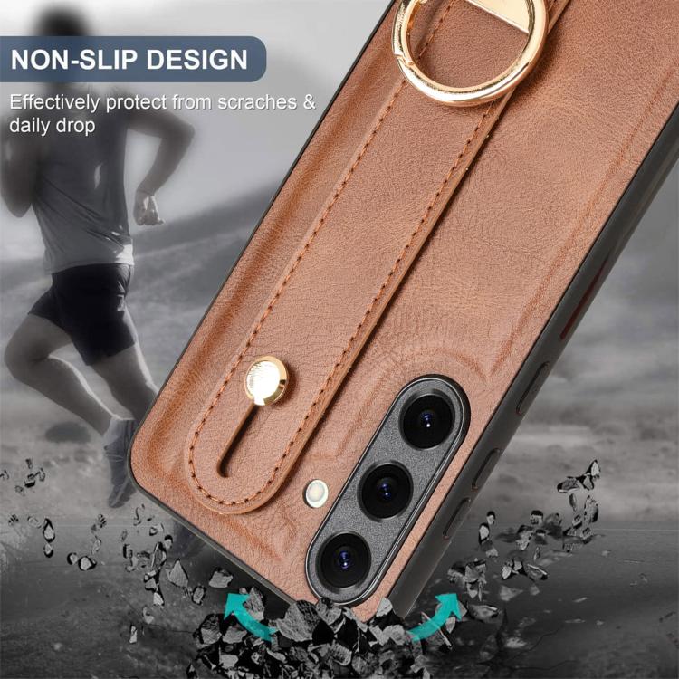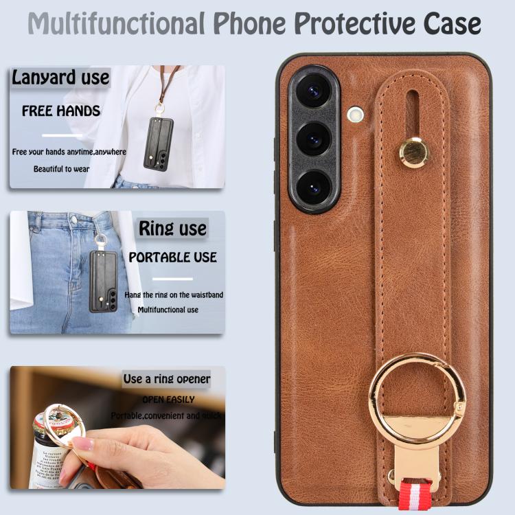 For Samsung Galaxy S25+ 5G Wristband Leather Back Phone Case(Brown)