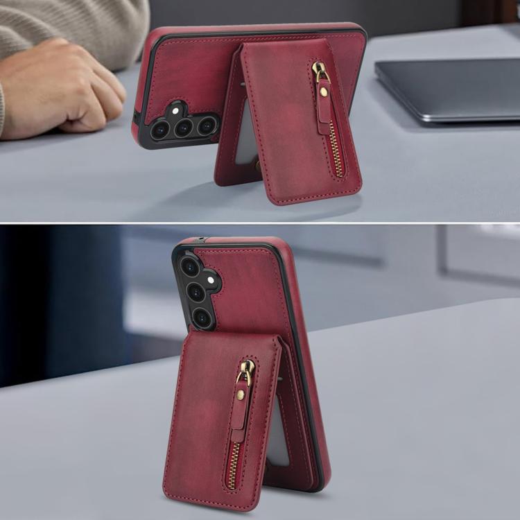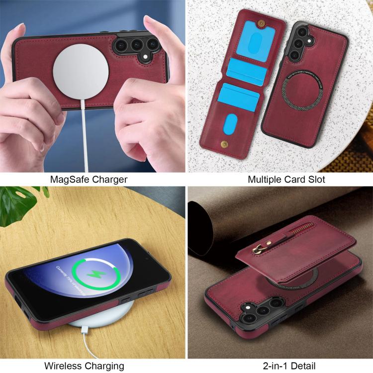For Samsung Galaxy S25 5G Zipper Wallet Split MagSafe Leather Back Phone Case(Red)