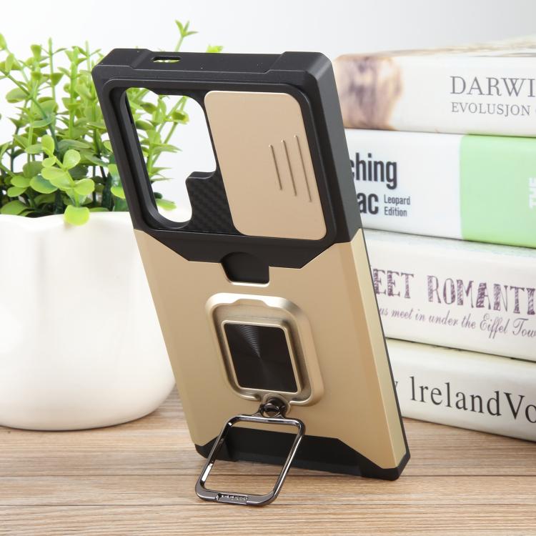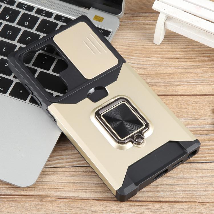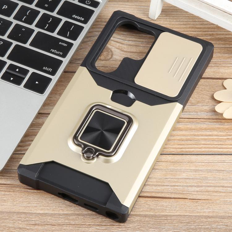 For Samsung Galaxy S25 Ultra 5G Camera Shield Card Slot PC+TPU Phone Case(Gold)