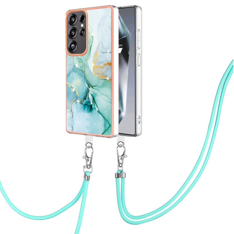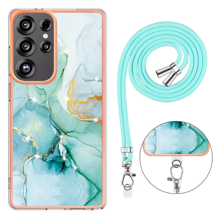 For Samsung Galaxy S25 Ultra 5G Electroplating Marble Dual-side IMD Phone Case with Lanyard(Green 003)