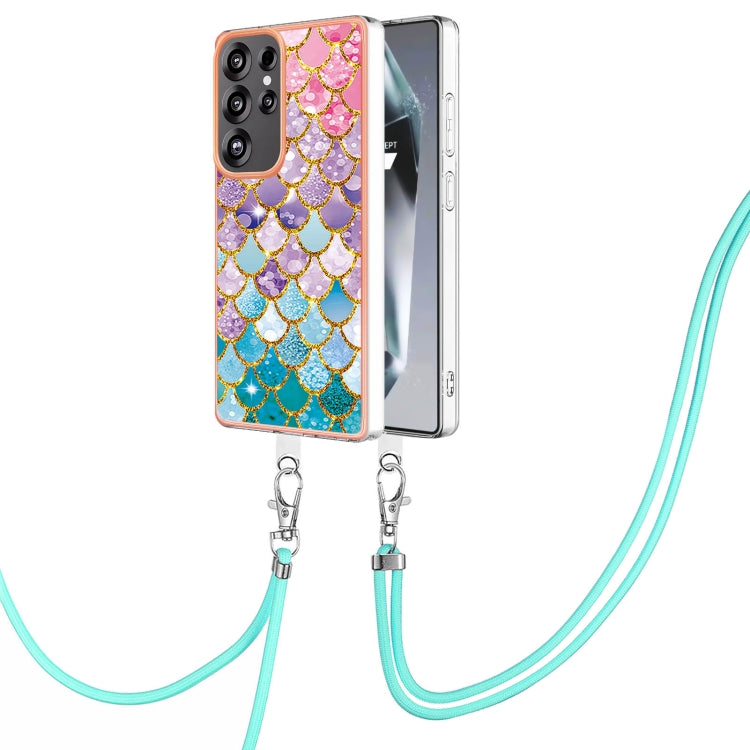 For Samsung Galaxy S25 Ultra 5G Electroplating Pattern IMD TPU Shockproof Case with Neck Lanyard(Colorful Scales)