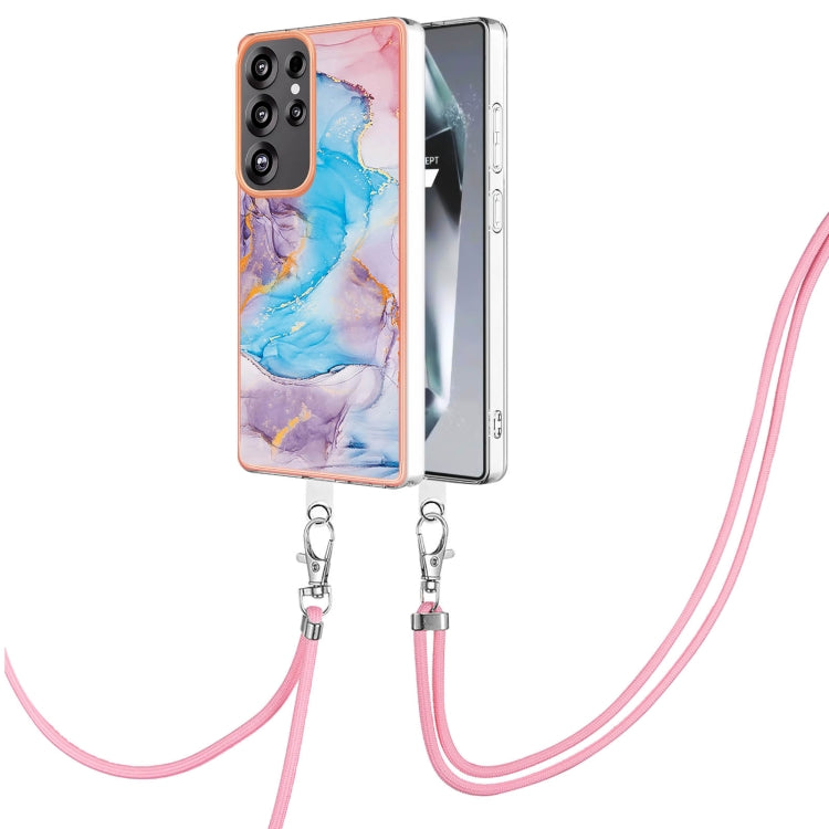For Samsung Galaxy S25 Ultra 5G Electroplating Pattern IMD TPU Shockproof Case with Neck Lanyard(Milky Way Blue Marble)