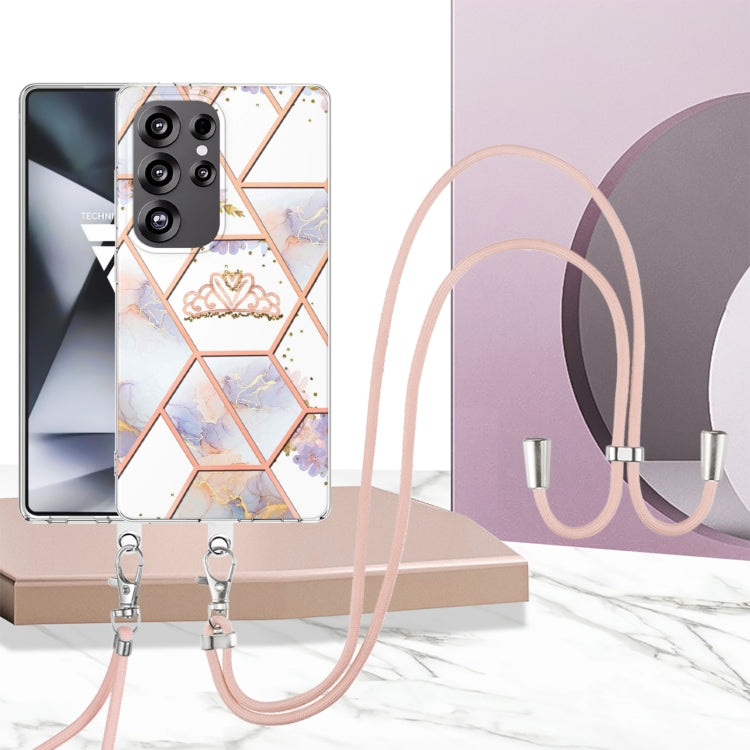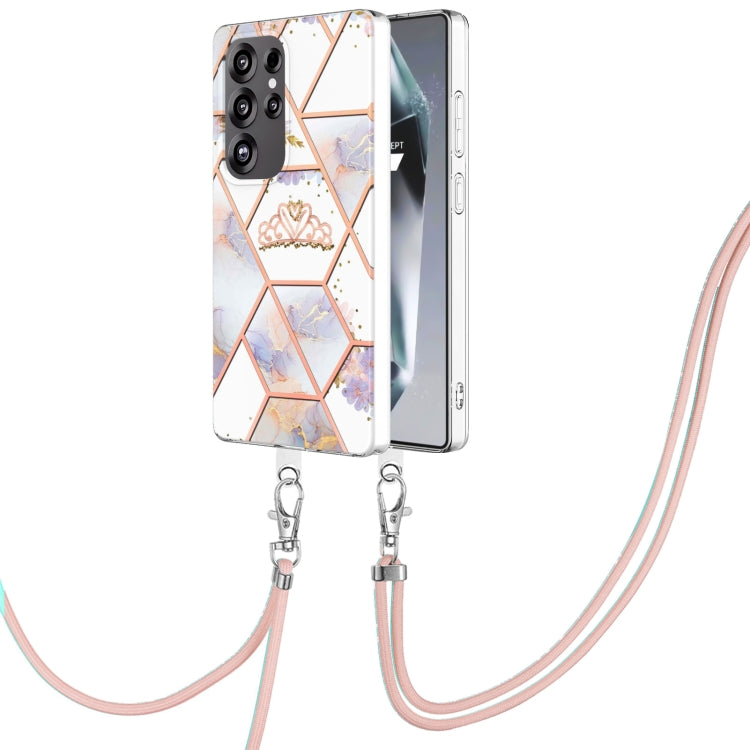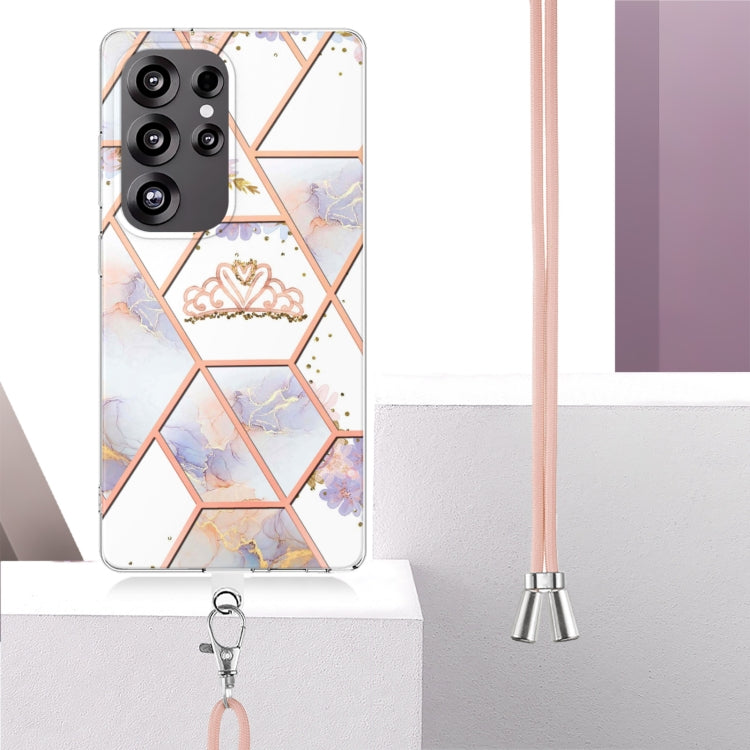 For Samsung Galaxy S25 Ultra 5G Electroplating Splicing Marble Flower IMD TPU Phone Case with Lanyard(Crown)