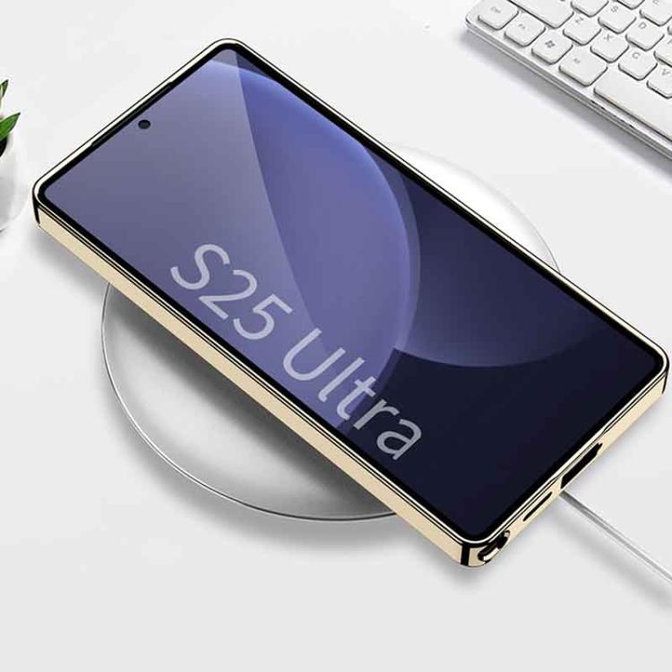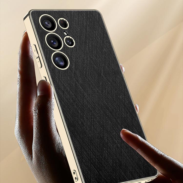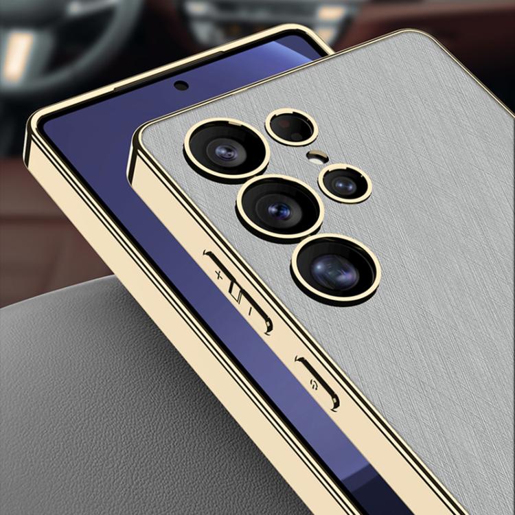 For Samsung Galaxy S25 Ultra 5G GKK Plating Leather Silver Brocade Phone Case, Not Included Pen(Silver Brocade Grey)