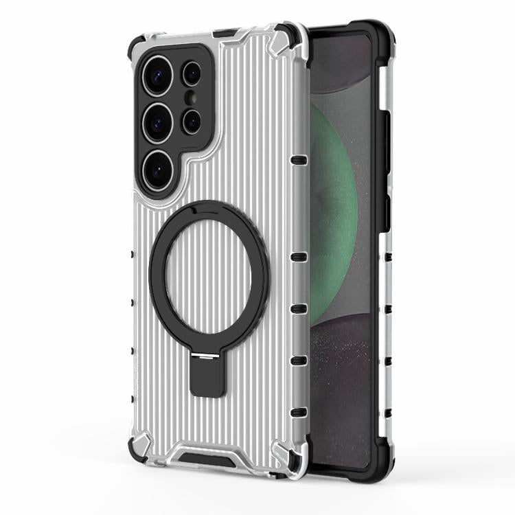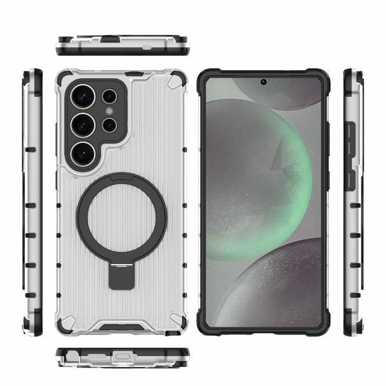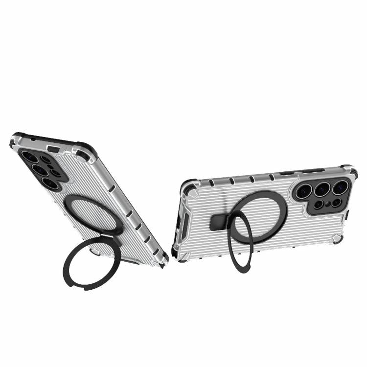 For Samsung Galaxy S25 Ultra 5G Grating 360 Degree Rotating Holder Shockproof Phone Case(Transparent)