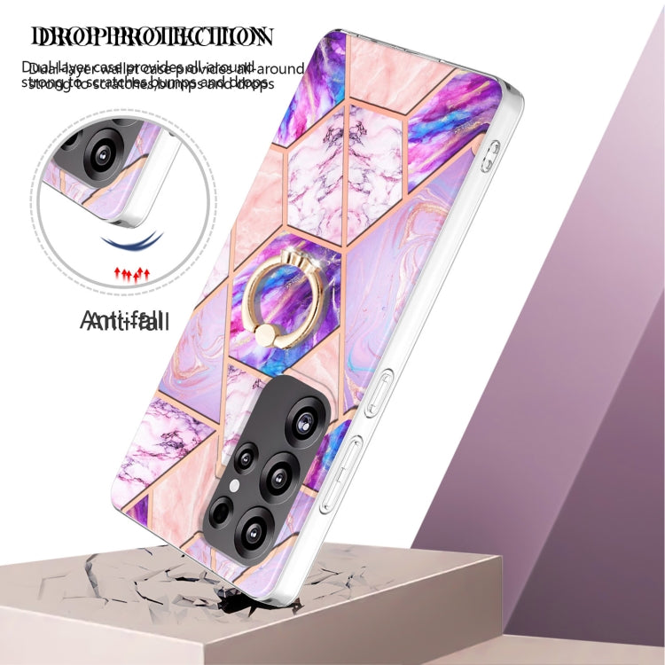 For Samsung Galaxy S25 Ultra 5G Splicing Marble Flower IMD TPU Phone Case Ring Holder(Light Purple)