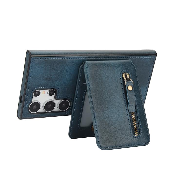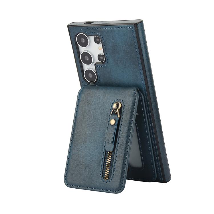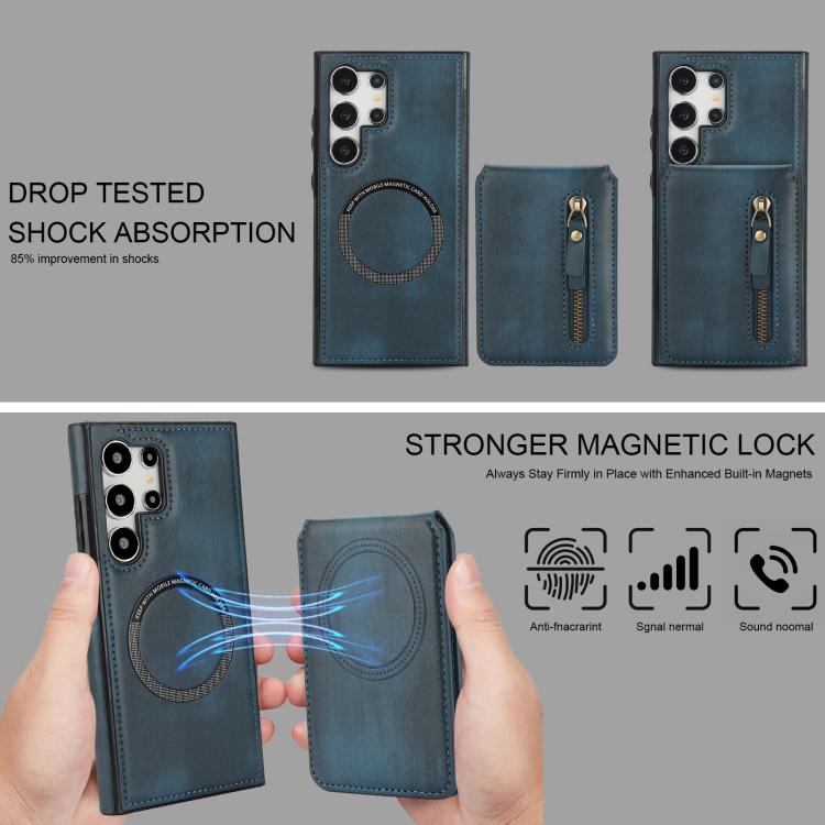 For Samsung Galaxy S25 Ultra 5G Zipper Wallet Split MagSafe Leather Back Phone Case(Blue)