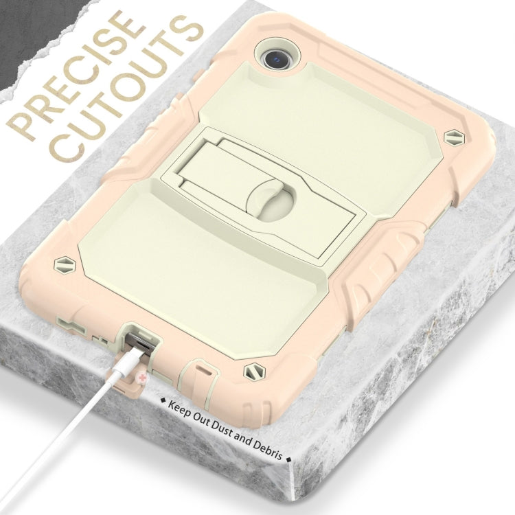 For Samsung Galaxy Tab A11 / A9 Silicone Hydric PC Tablet Case with Shoulder Strap & Holder(Rose Gold)
