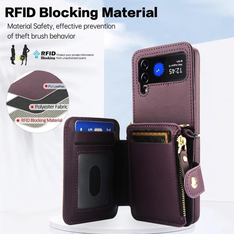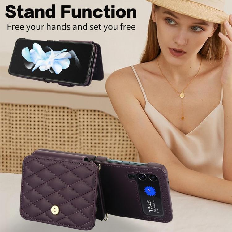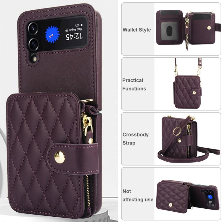 For Samsung Galaxy Z Flip3 Crossbody Rhombus Wallet Bag Folding Phone Case with Lanyard(Dark Purple)