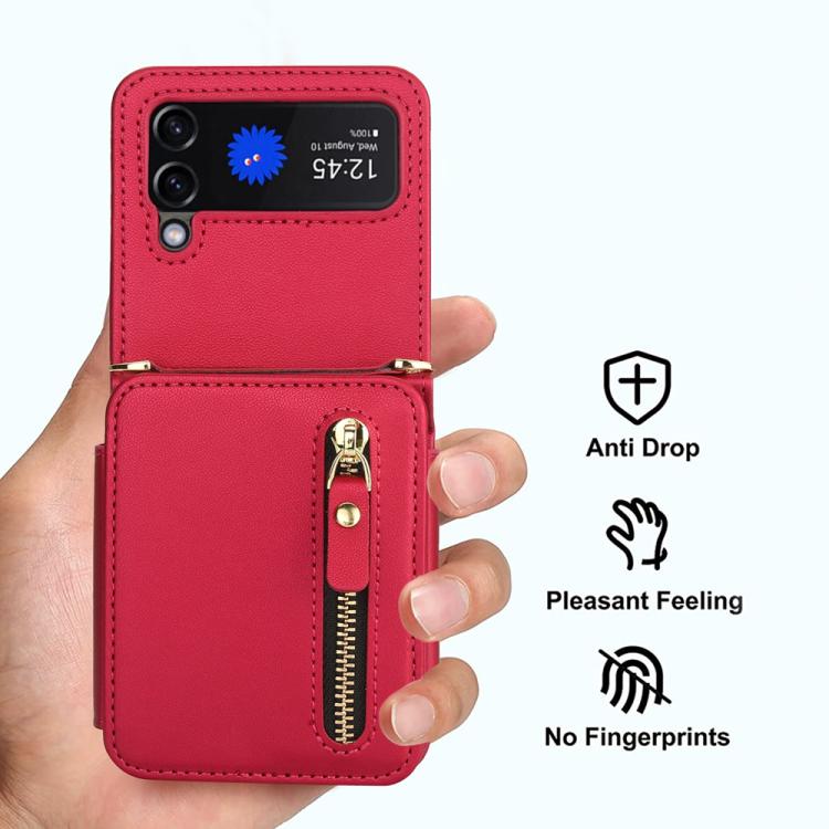 For Samsung Galaxy Z Flip3 Crossbody Zipper Dual Buckle Card Bag Folding Phone Case(Red)