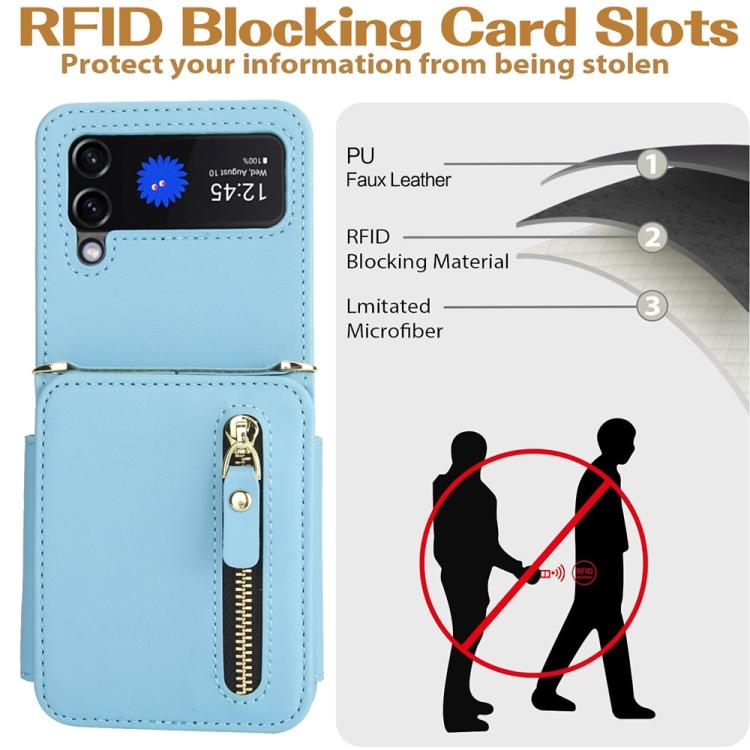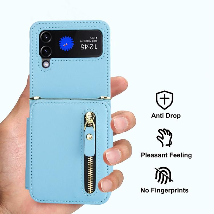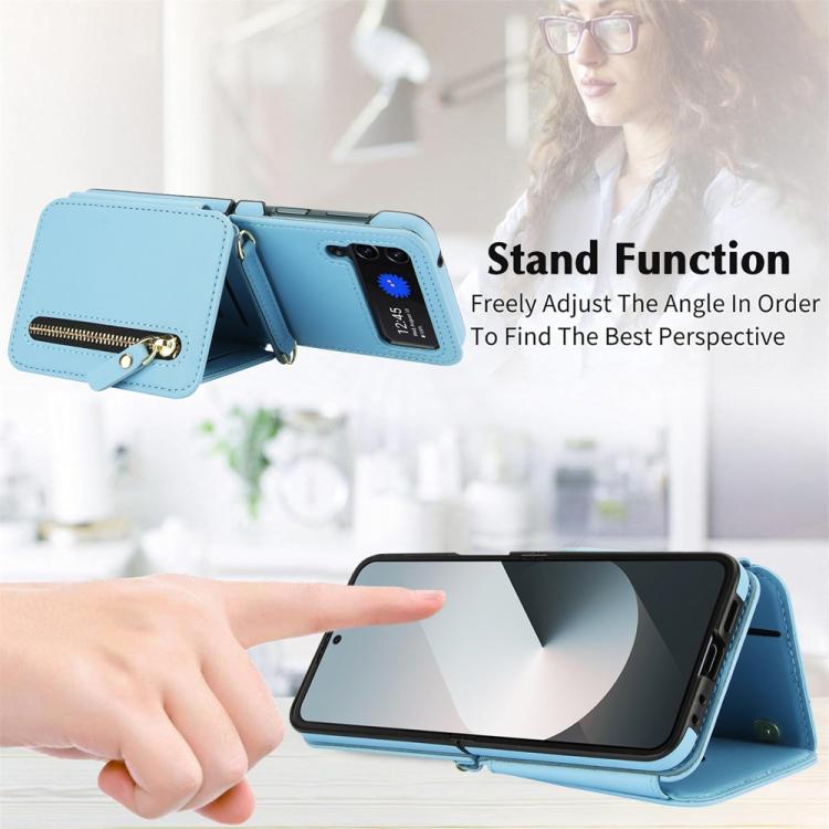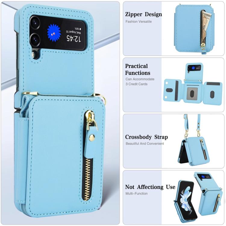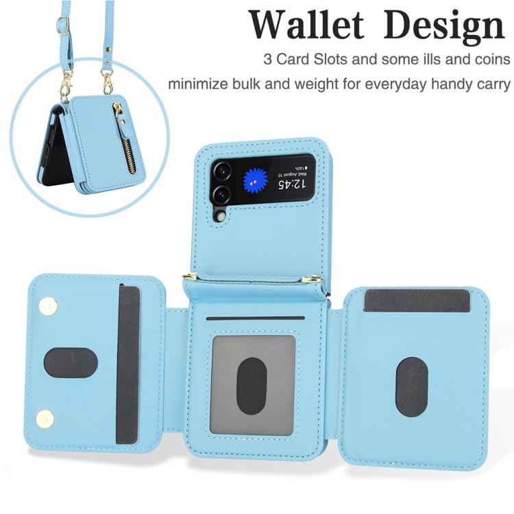 For Samsung Galaxy Z Flip4 Crossbody Zipper Dual Buckle Card Bag Folding Phone Case(Blue)