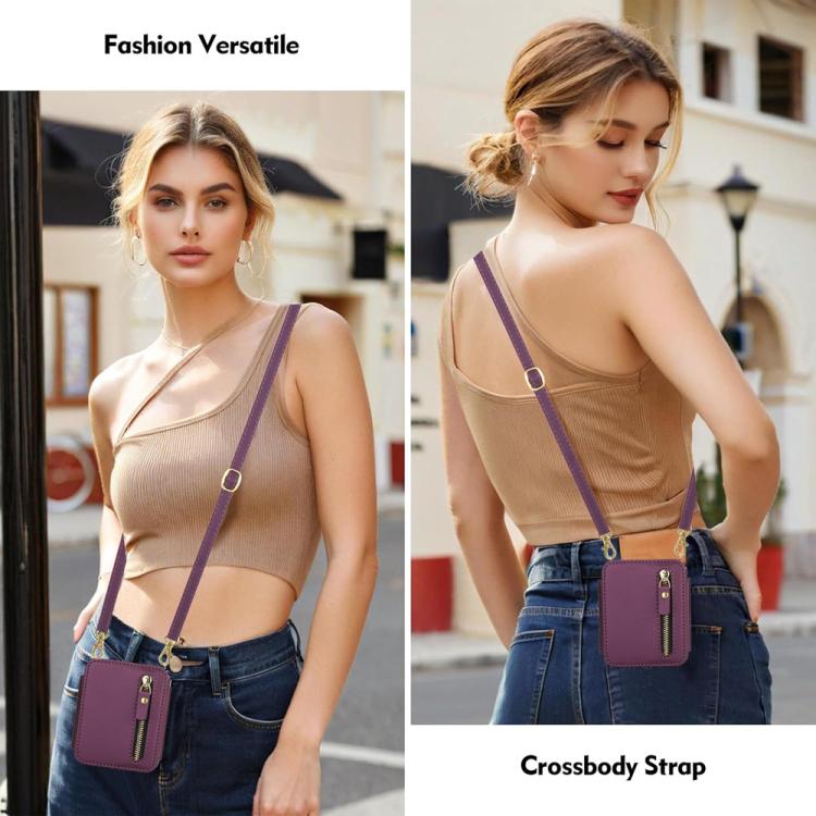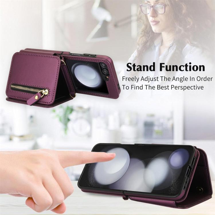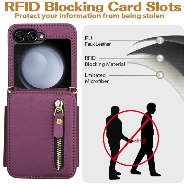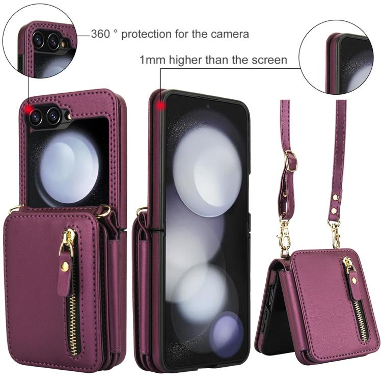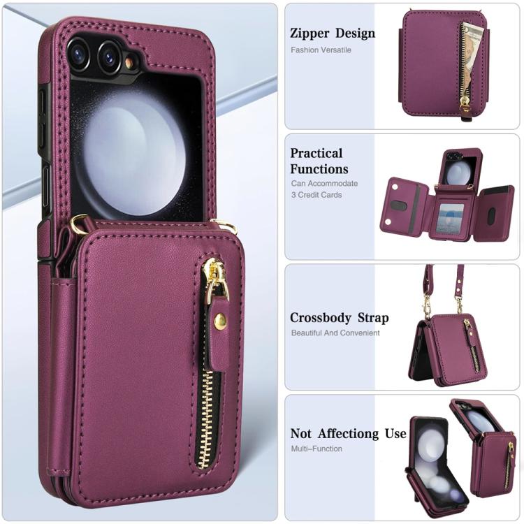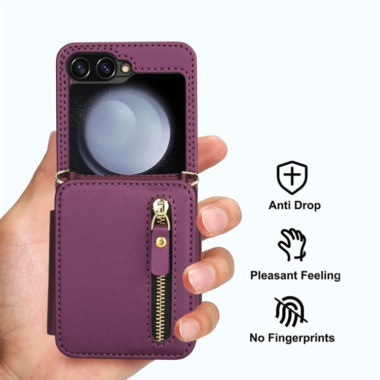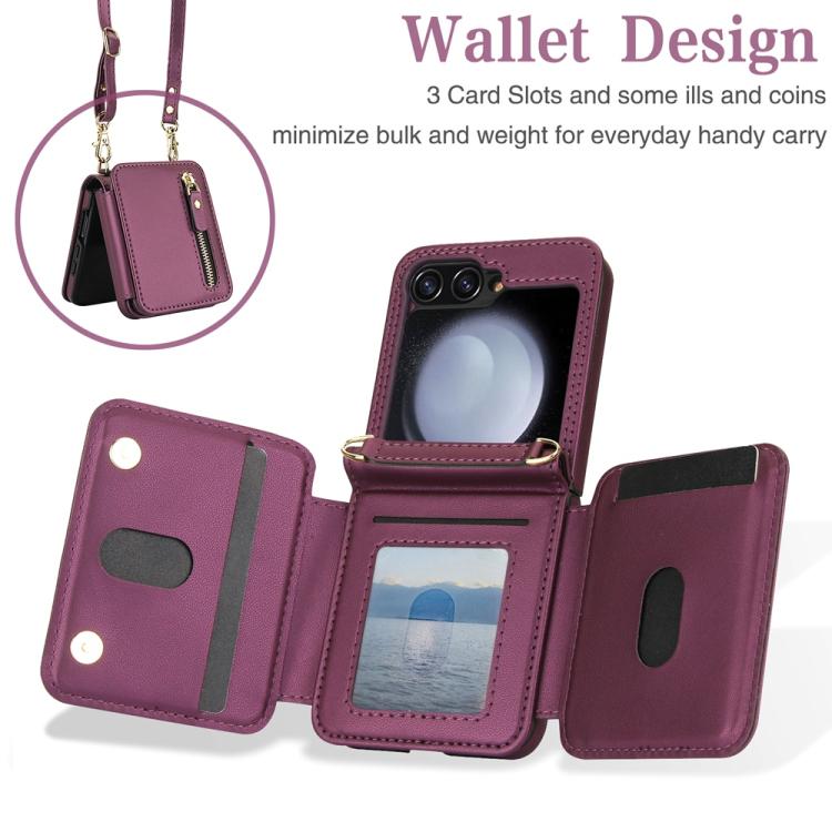 For Samsung Galaxy Z Flip5 Crossbody Zipper Dual Buckle Card Bag Folding Phone Case(Dark Purple)
