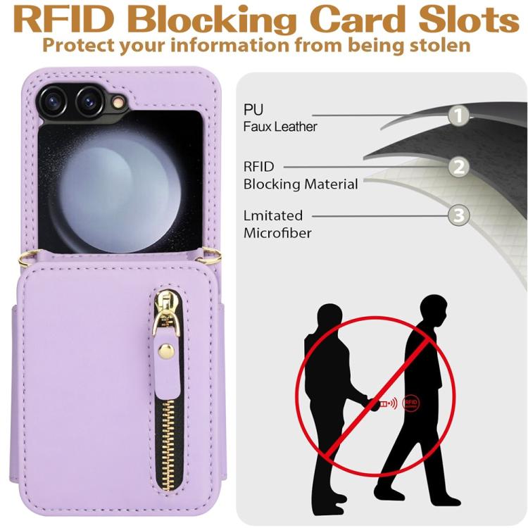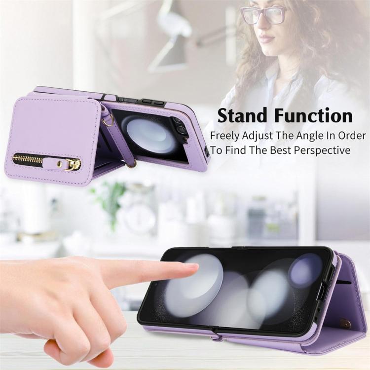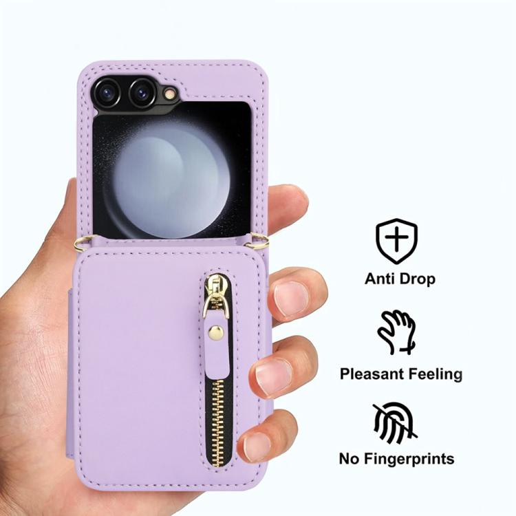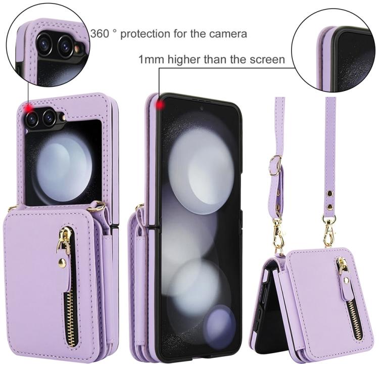 For Samsung Galaxy Z Flip5 Crossbody Zipper Dual Buckle Card Bag Folding Phone Case(Light Purple)