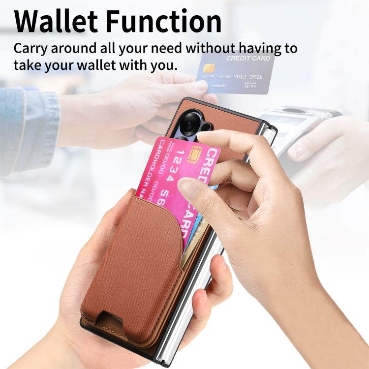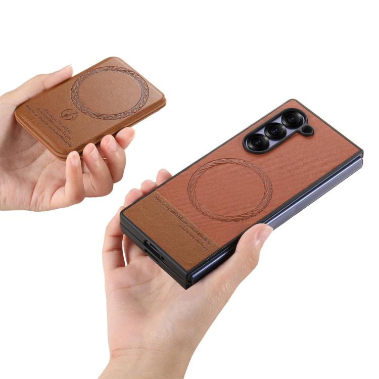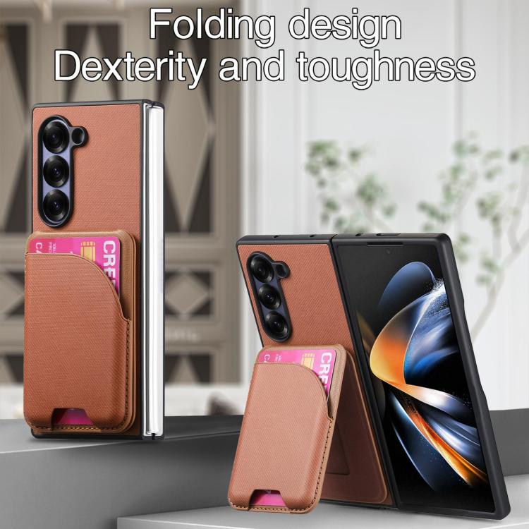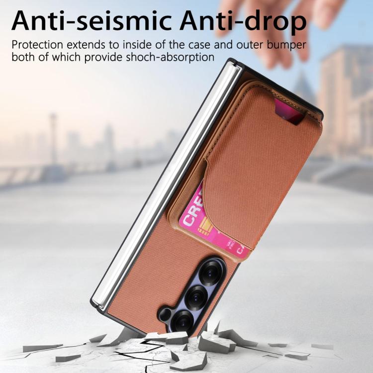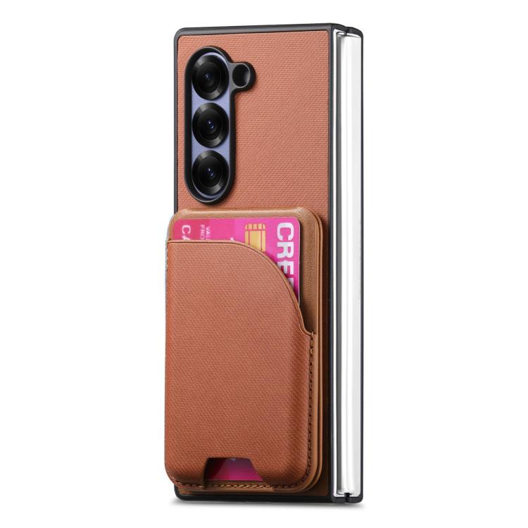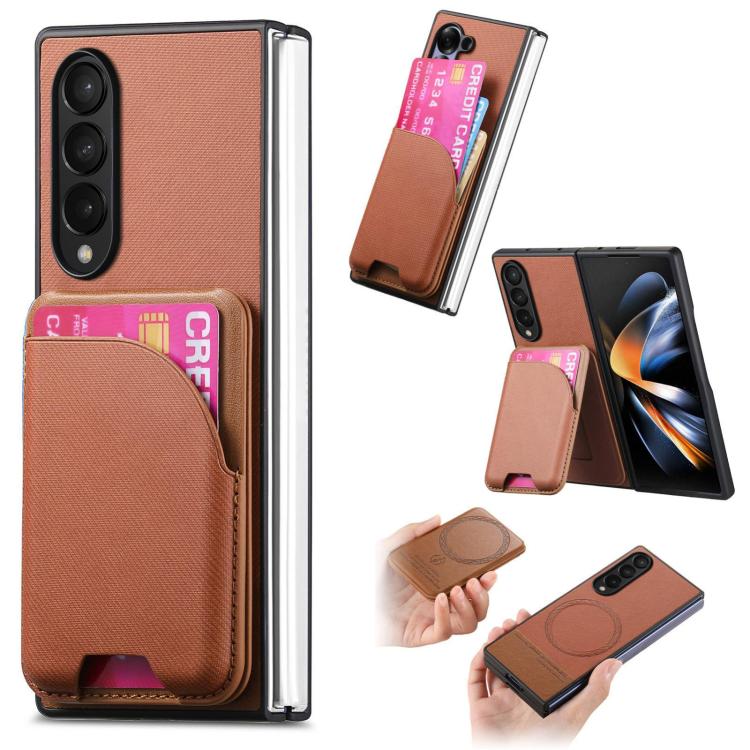 For Samsung Galaxy Z Fold4 Twill Fabric Leather Skin Card Bag Magnetic Back Phone Case(Brown)