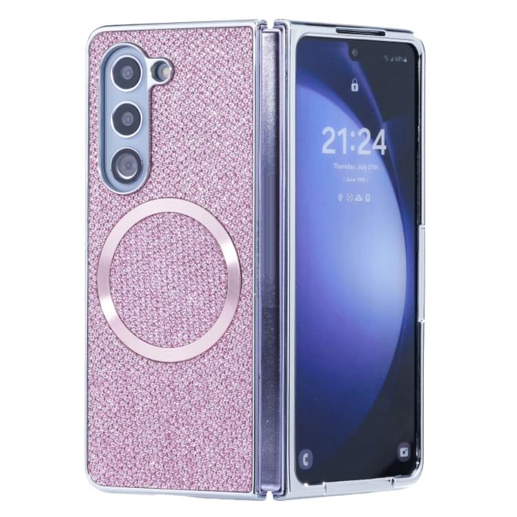 For Samsung Galaxy Z Fold5 Glitter Powder MagSafe Magnetic Fold Phone Case(Pink)