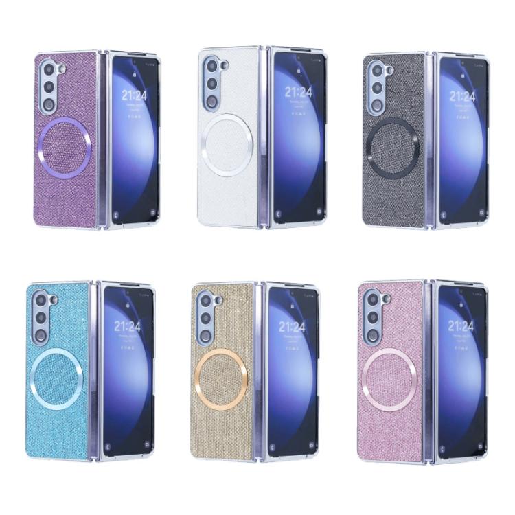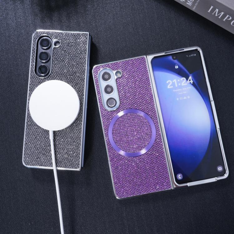 For Samsung Galaxy Z Fold5 Glitter Powder MagSafe Magnetic Fold Phone Case(Purple)