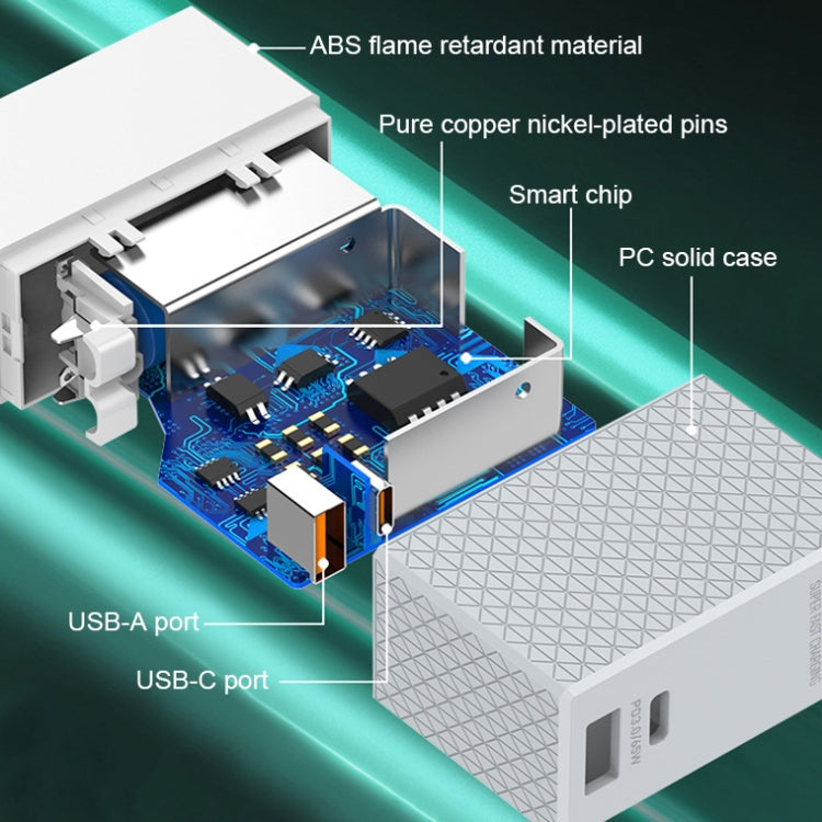 LDNIO A2620C 65W USB+Type-C/USB-C Port Dual Port Universal Phone Tablet Travel Charger(UK Plug+Type-C to 8 Pin)