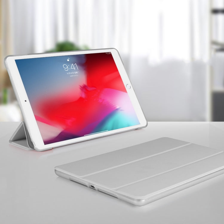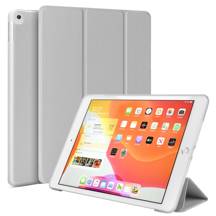 Three-folding Surface PU Leather TPU Matte Soft Bottom Case with Holder & Sleep / Wake-up Function For iPad 10.2 2021 / 2020 / 2019 / iPad Pro 10.5 inch (Grey)
